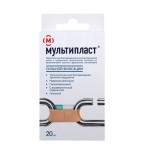 Мультипласт 20 шт сильная фиксация (универсальный набор 4 размера - 2 шт 3.8х3.8см + 2 шт 3.8х5.6см + 8 шт 1.9х7.2см + 8 шт 2.5х7.2см) телесный